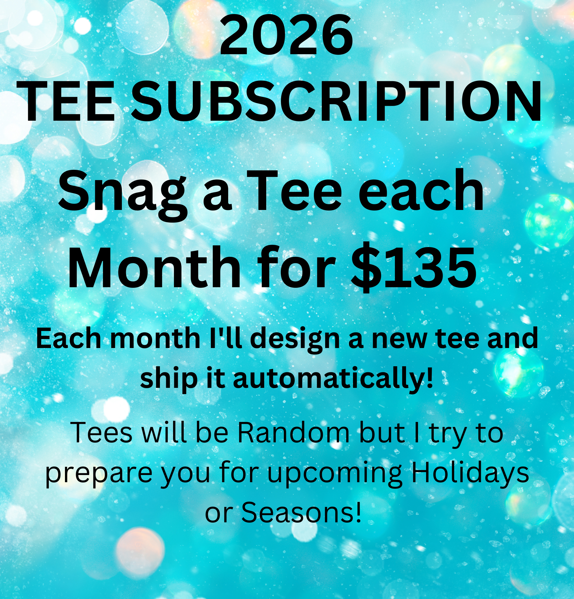 - Each Month I'll design a New Tee that will go out to subscription holders 1st!